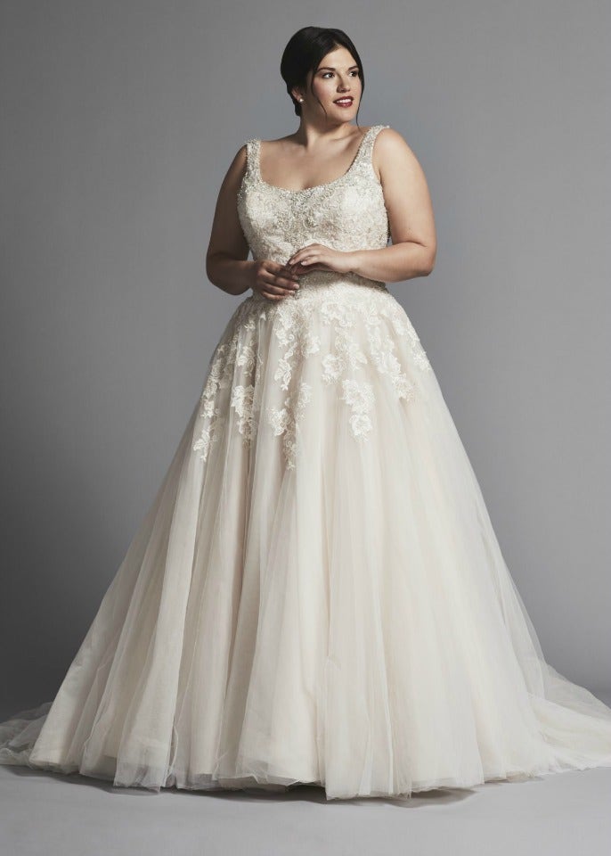 30. Christina Wu Spaghetti Strap Plus Size Wedding Gown