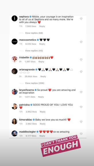 Nikkie also posted a series of Instagram Stories, explaining that she didn't expect such a positive response. She even posted a screen shot of all the comments she's received from celebrities and makeup brands, including Ariana Grande, Sephora, and MAC.