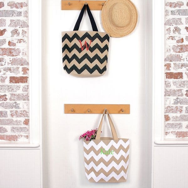 Jute totes are always in, but these cute bags are even cooler than your typical already-cool tote. Chevron print offers that delightfully trendy look that turns a bridal party tote into an everyday tote, all while giving a little Southwestern or beachy flair to your wedding flavors.
