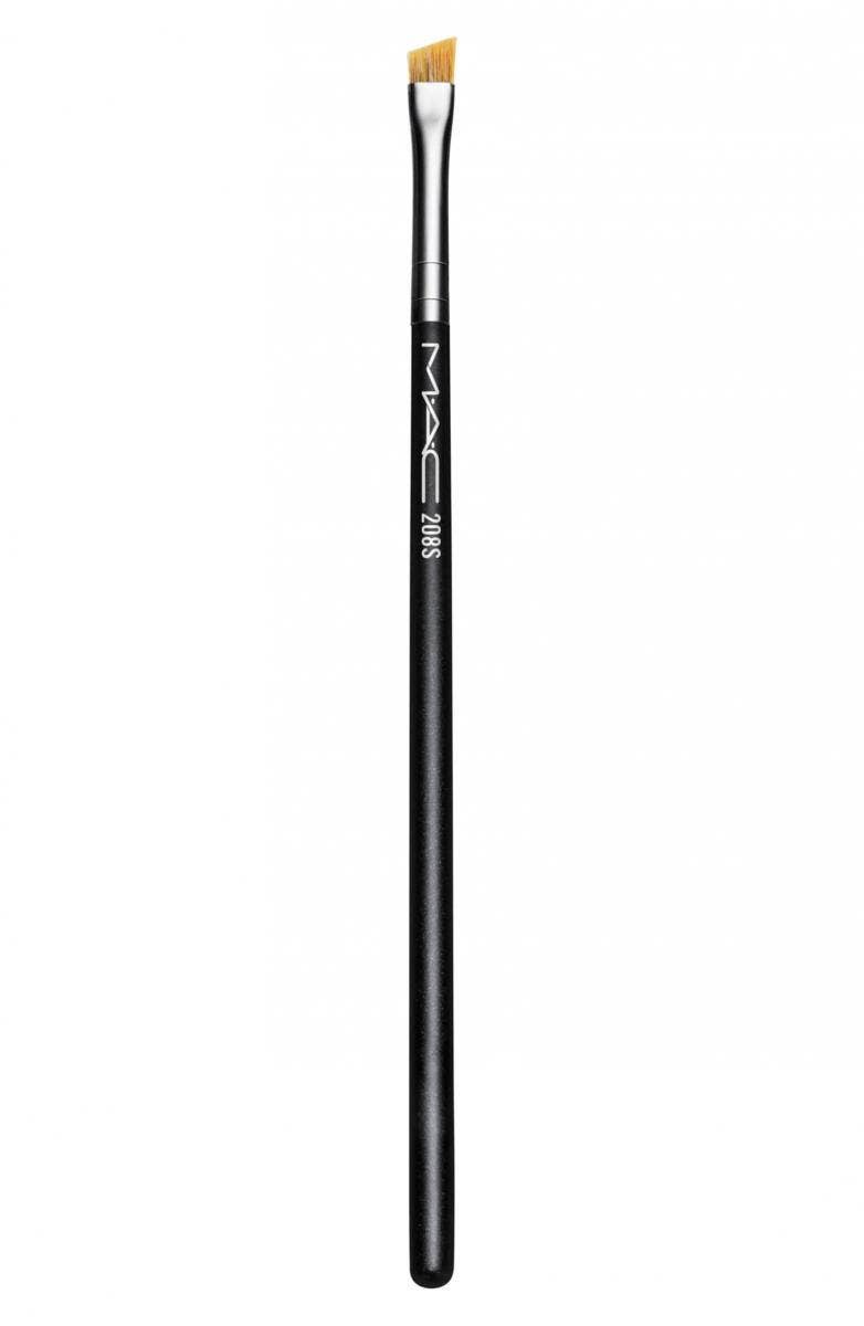 A synthetic-bristle brush with an angled, dense head that provides full coverage, you dip the brush into your brow product and feather on using short strokes. For a soft eyeliner look, use the brush to press dark eyeshadow into the lash line.