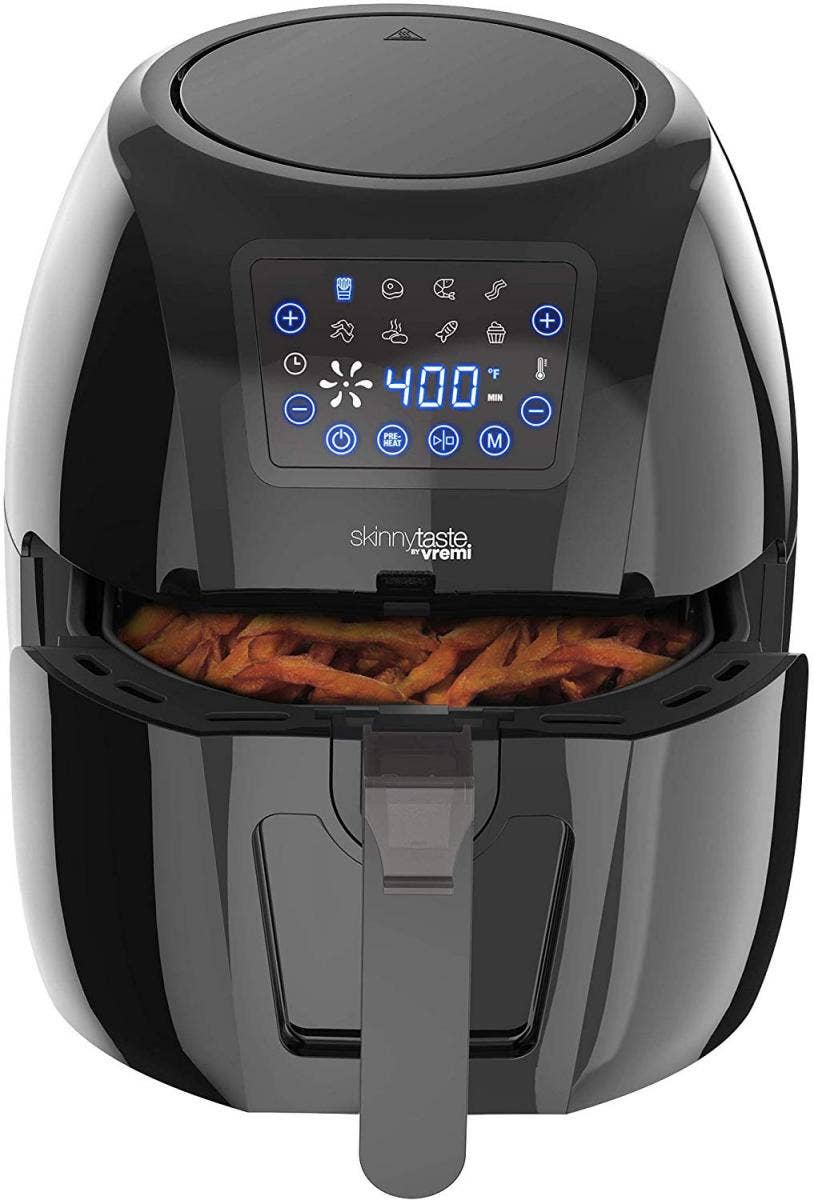 Vremi partnered with Gina Homolka, SkinnyTaste blog founder and author to make this air fryer that also includes a booklet with 15 SkinnyTaste recipes. This 1700W power oilless air fryer uses hot air combined with 360° high rapid air circulation with a temperature range from 140-400°F to cook healthier dishes faster.