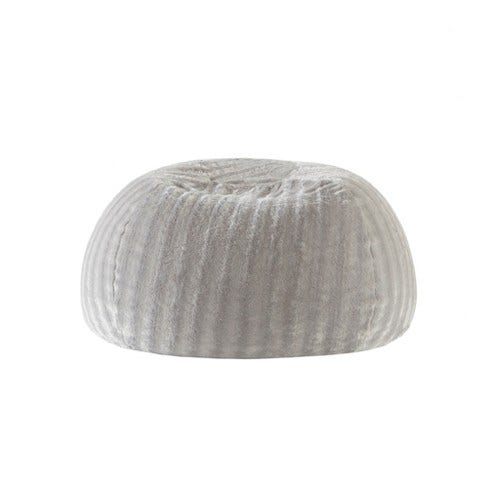 This is a faux fur bean bag that's soft to the touch and perfect for lying against. It's great for any age and any room.