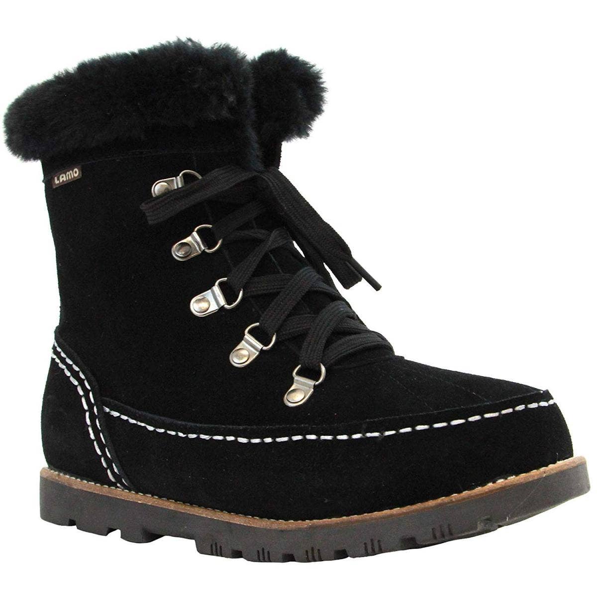 The Taylor from Lamo is a gorgeous, yet sturdy hiker boot with a cow suede upper and lined with premium faux fur. It also features a soft furry collar around the ankle for a chic look.