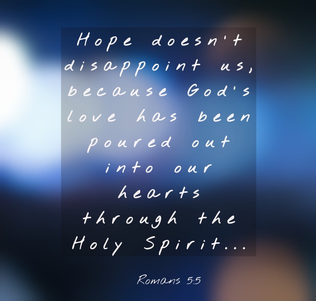 "And hope doesn't disappoint us, because God's love has been poured out into our hearts through the Holy Spirit which was given to us." — Romans 5:5