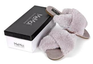 Indoor slippers are a must for homebodies. These MeMoi classic slide style mules get a luxurious update with a wide, faux-fur band and open toe look. The chicest slippers around.