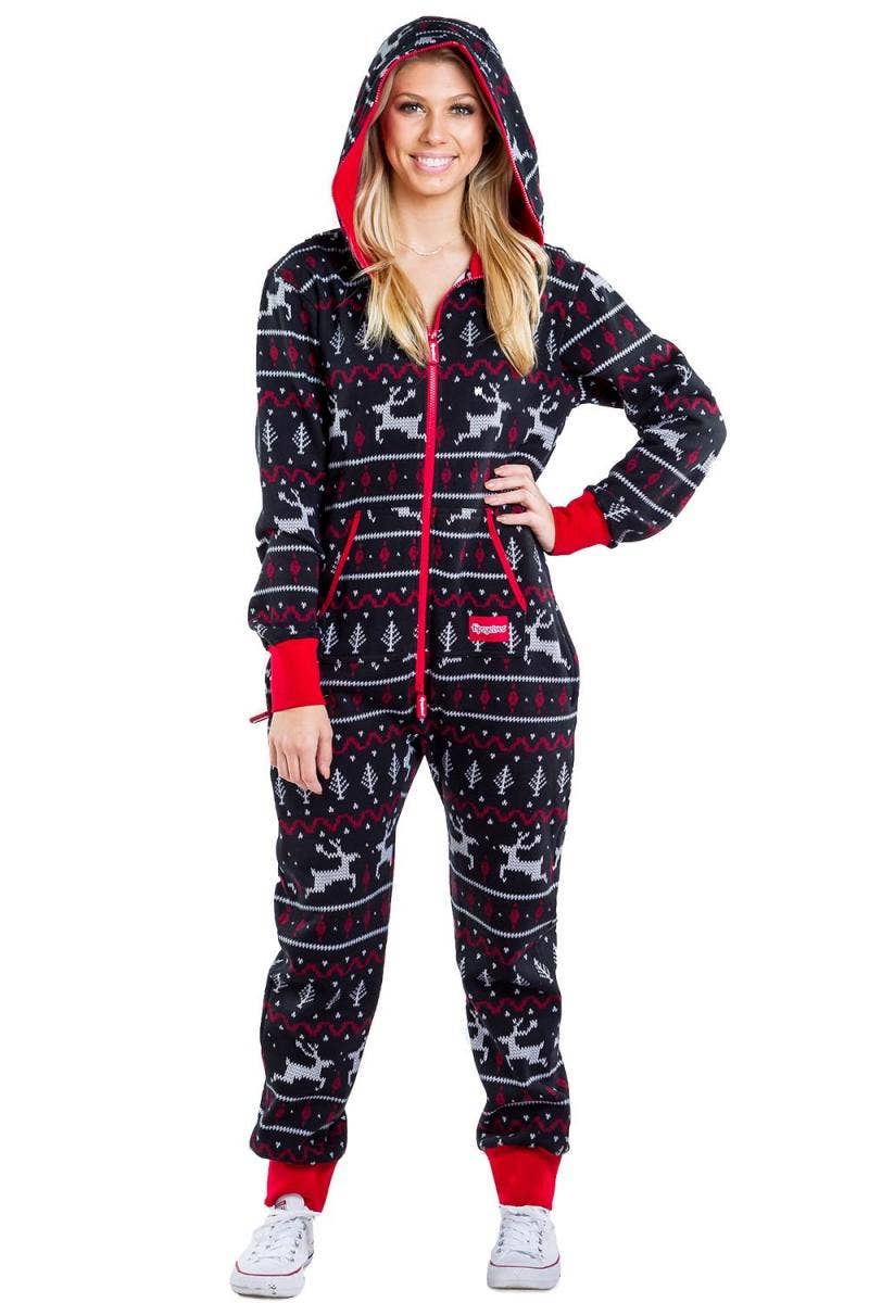 Who doesn't look good in black? This black and red fair isle reindeer onesie from Tipsy Elves is perfect for lounging around the house, staying comfortable and cool at an Ugly Christmas Sweater Party or opening presents on Christmas morning. Also: You're never too old for a onesie — ever.