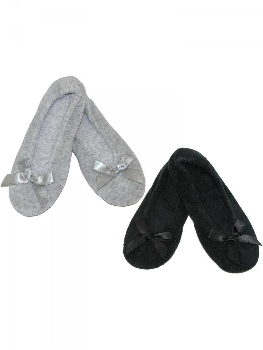 Cotton-blend plush terry ballerina house shoes are easy to wear, and are a flexible fit with feminine satin bow detail.