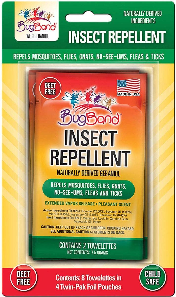 Keep yourself safe and comfortable with the line of DEET-free BugBand Insect Repellents. A handy and easy-to-use method of applying Geraniol to insect repellent is safe. Towelettes allow for exact application of lotion on exposed skin.