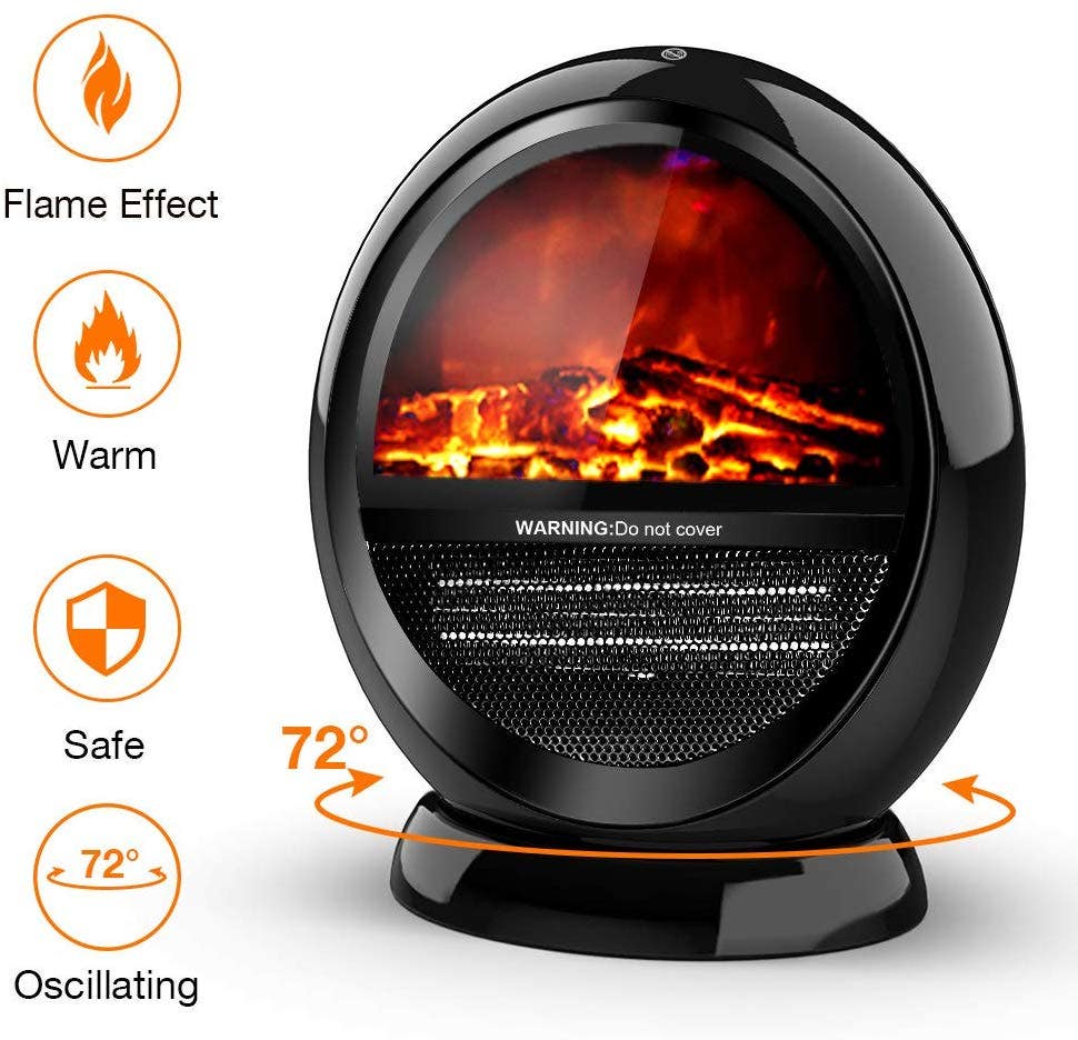 Air Choice’s flame-effect also offers a bit of ambiance. In addition, it’s low-noise, features two heat settings, and oscillates.