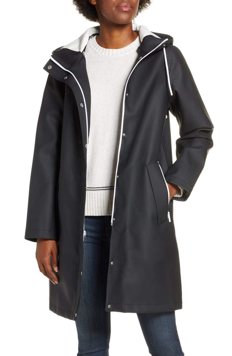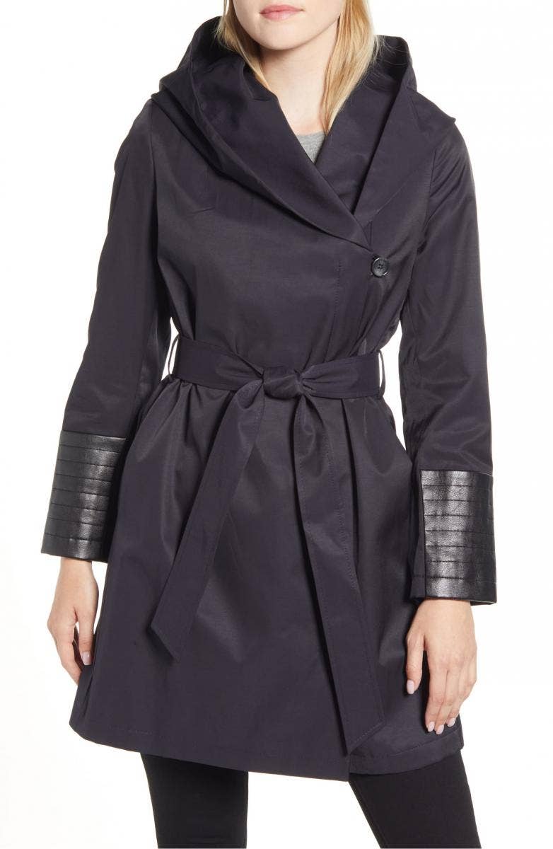 6. Via Spiga Faux Leather Trim Rain Jacket