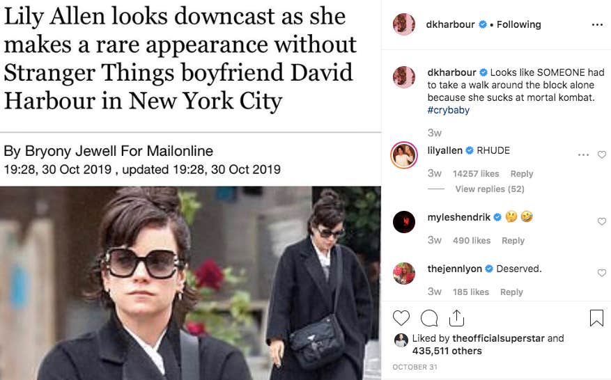 Harbour captioned it, "Looks like SOMEONE had to take a walk around the block alone because she sucks at mortal kombat #crybaby" to which Allen commented, "RHUDE."