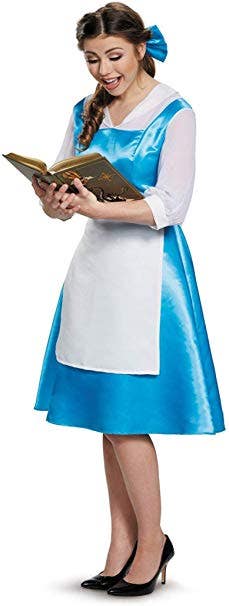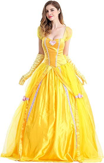 These sort of costumes are easy to find, but any shimmery long dress will work. Just pair it with a tiara.