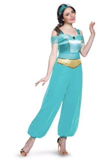 Who wouldn't want to dress as a princess with a pet tiger? This Jasmine costume includes a top, pants, and headpiece.