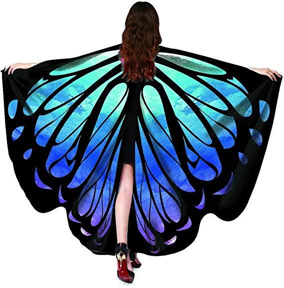 This women's costume item includes a set of soft butterfly wings as a costume accessory.