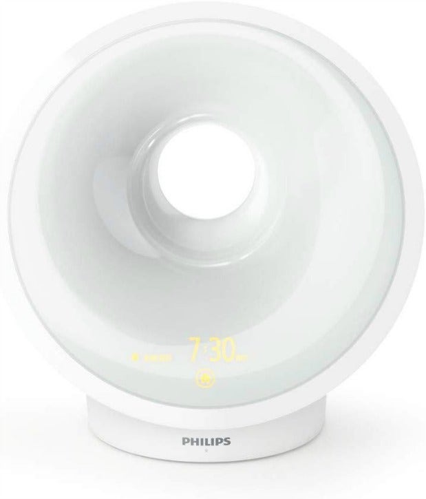 A clinically-proven sleep and wake-up light designed to help people relax and sleep and wake up naturally. The alarm clock has a built-in AmbiTrack sensor to measure your bedroom’s temperature, noise, light and humidity levels, giving recommendations for better sleep. Additional features include customizable alarm, themes through your smartphone, an FM radio, power backup, USB mobile phone charging, and AUX dock.