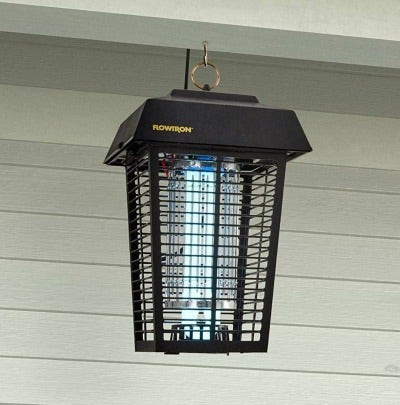This zapper attracts flying insects with not one but two UV light bulbs, and the addition of a mesh screen that keeps you from touching the electrical grid.