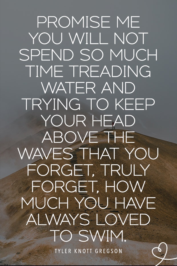 “Promise me you will not spend so much time treading water and trying to keep your head above the waves that you forget, truly forget, how much you have always loved to swim.” — Tyler Knott Gregson