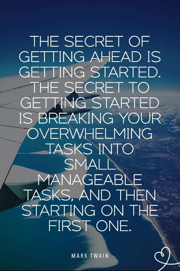“The secret of getting ahead is getting started. The secret to getting started is breaking your overwhelming tasks into small manageable tasks, and then starting on the first one.” — Mark Twain
