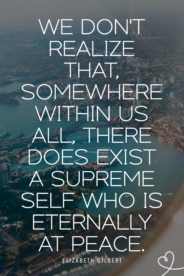 "We don't realize that, somewhere within us all, there does exist a supreme self who is eternally at peace." — Elizabeth Gilbert