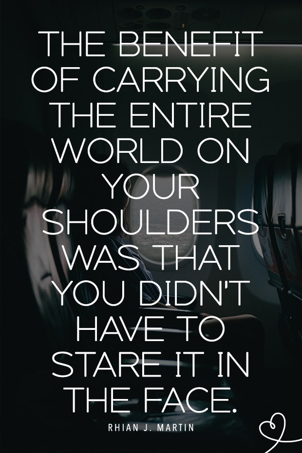 "The benefit of carrying the entire world on your shoulders was that you didn't have to stare it in the face." — Rhian J. Martin