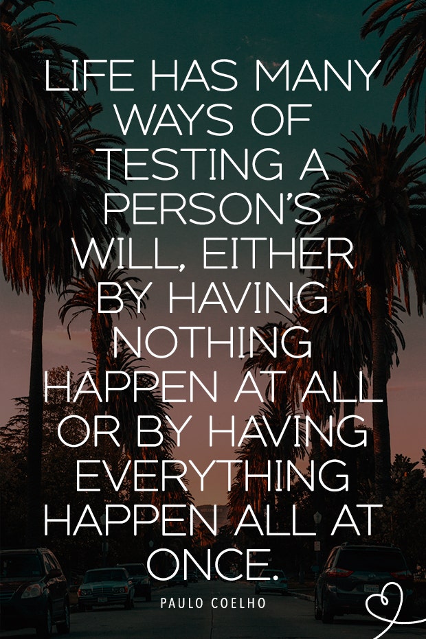“Life has many ways of testing a person’s will, either by having nothing happen at all or by having everything happen all at once.” — Paulo Coelho
