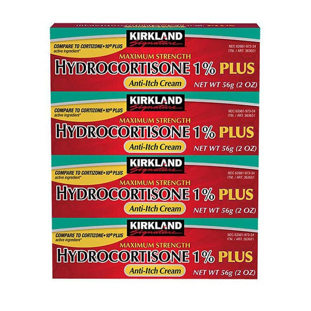 Kirkland Signature Hydrocortisone 1% Plus contains the active ingredient hydrocortisone 1%, enriched with aloe plus vitamins A and E. This topical cream temporarily relieves itching associated with minor skin irritations, inflammation and rashes due to eczema, psoriasis, insect bites, detergents, poison ivy, and more.