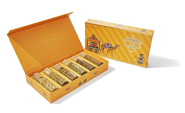 Curated by expert blenders and with the choicest of botanicals, this vibrant Turmeric Tea Tales gift set includes six delicious turmeric blends that are a perfect mix of farm-fresh flavors. The assortment includes Turmeric Spiced, Turmeric Moringa, Turmeric Ashwagandha, Turmeric Fennel, Turmeric Ginger, and Turmeric Saffron.