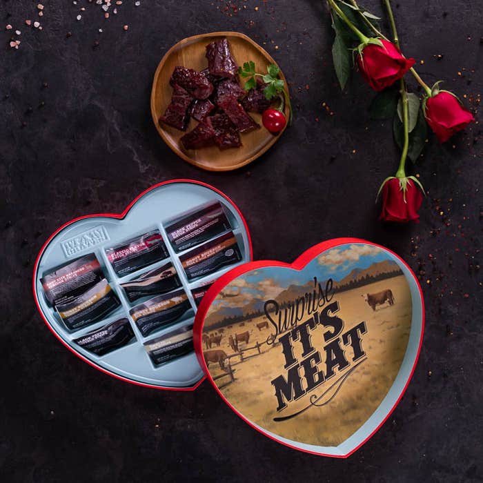 The Jerky Heart is a wholly-savory, hyper-sensual meat surprise of affection and flavor. There's no sentiment words can convey that jerky can't, but you can still have your very own message printed inside the box. This set includes ten knee-weakening flavors of tender beef strips like Sesame Ginger, Ghost Pepper, or Root Beer Habanero.