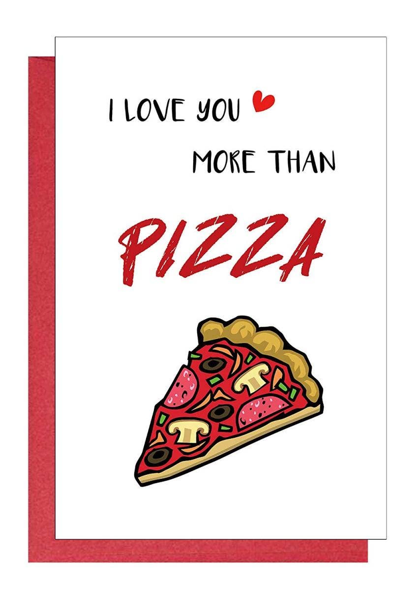 This funny joke card is also great as a complement to a gift. Not only will it bring a big smile to the recipient's face, but why not order pizza to truly prove the card's message?