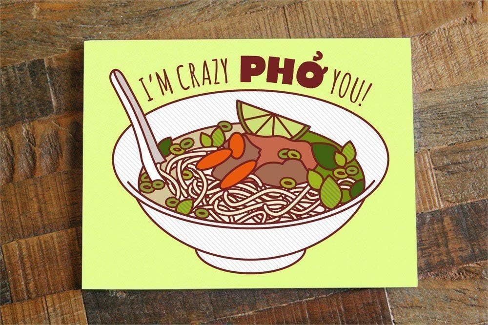"I'm Crazy Pho You!" — what better way to say it? Let your significant other know how much you adore them with this yummy and punny pho soup card.