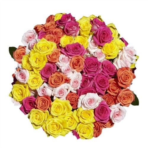 Choose from either 50 or 100 roses! The roses come in two bunches, meaning you can have a variety of color in one gorgeous bouquet. Next-day delivery is also available if you waited until the last minute to send a surprise.