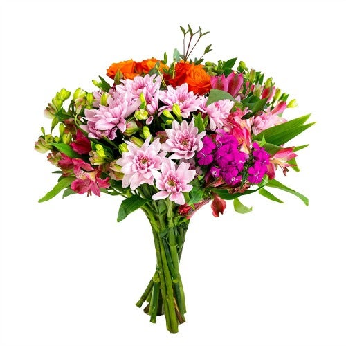 Variety is the spice of life, right? This bouquet includes a gorgeous mix: 14 stems of Charmelia, Spray Roses, Dianthus, Pompons, and foliage.