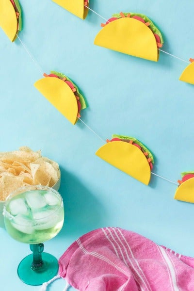 You can easily fashion these out of some colored card or by painting paper yourself. They look cute and make for a fun backdrop if you want to make your Cinco de Mayo celebrations into a video call party with friends.
