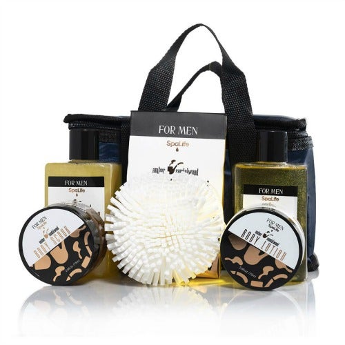 Why are spa sets always for women? This all-natural gift set has lotions, scrubs and washes in a musky sandalwood scent — perfect for a man in need of pampering.