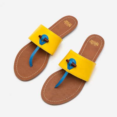 How fun are these summertime sandals for dressing up any outfit? Its colorful leather and chic toggle adornment make it simple and sophisticated.