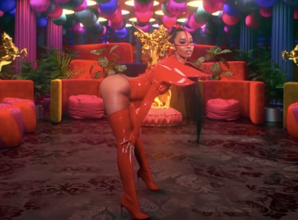 Spanish singer Rosalia appeared in a red room in the “WAP” music video.