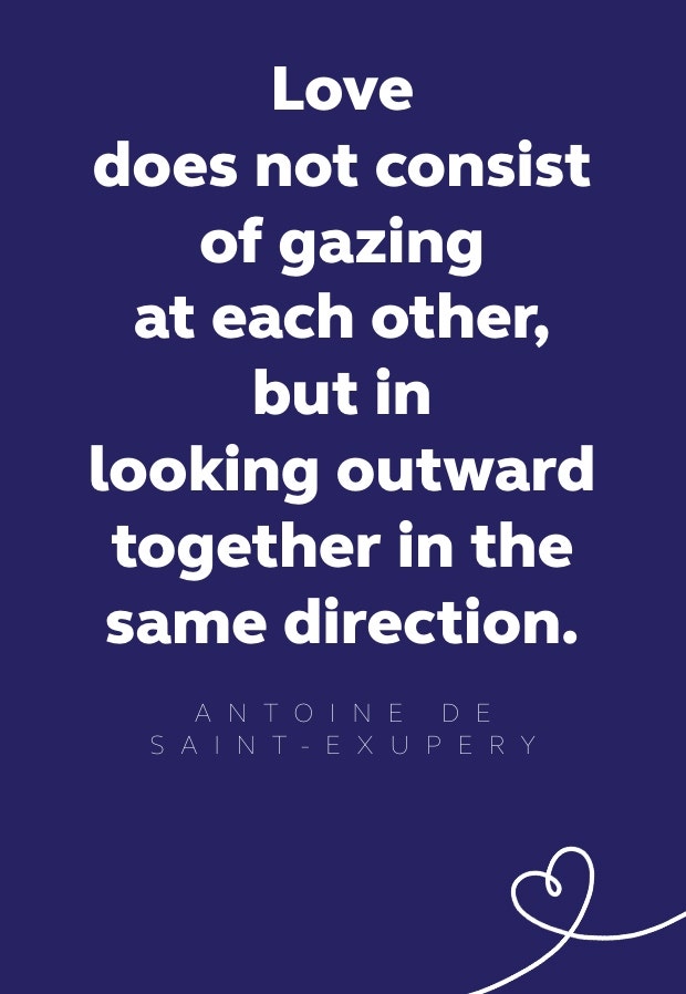 11. “Love does not consist of gazing at each other, but in looking outward together in the same direction.” — Antoine de Saint-Exupery