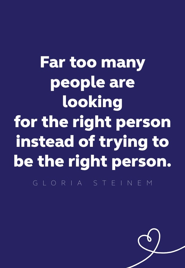 20. "Far too many people are looking for the right person, instead of trying to be the right person.” — Gloria Steinem