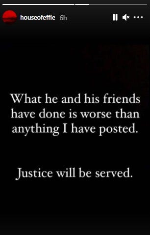 The Instagram account HouseOfEffie, which is run by the woman who first came forward with allegations against Hammer, posted a now-deleted Instagram story that seemingly suggested details even more horrifying than what she had already alleged are yet to be unveiled.