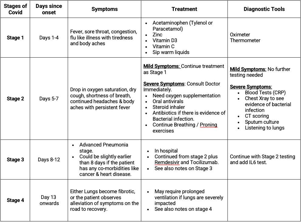 A cheat sheet to help you understand Covid symptoms, progression, treatment and diagnostics.