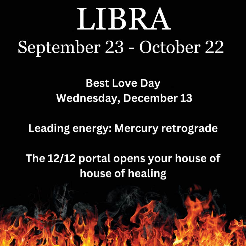 Whether it's past relationships, matters of separation or discussing how to continue growing together, you must use this energy to renegotiate, compromise, and focus on how to do things differently than you have before. This energy will be heightened by the 12/12 portal and the fiery New Moon in Sagittarius as you set your sights on the life and love you've wished for now, knowing it all lies beyond just one step out of your comfort zone.