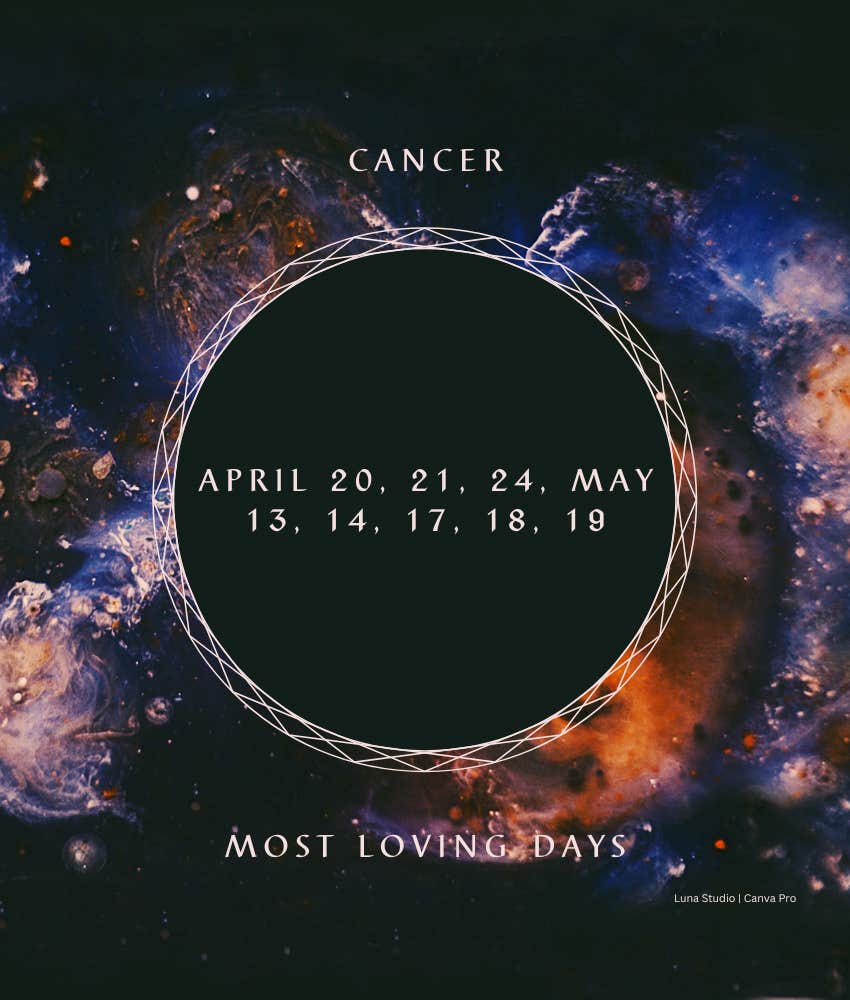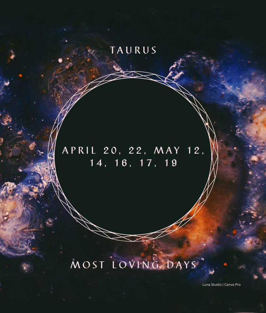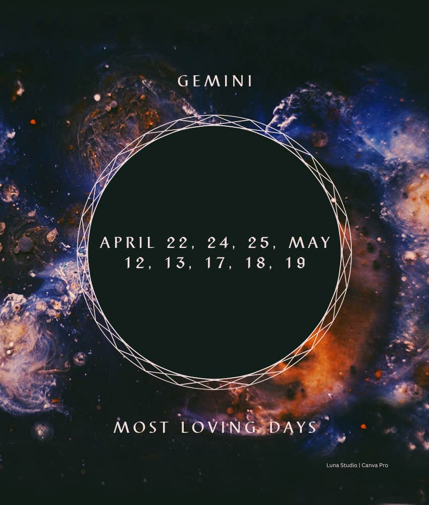 Most loving days: April 21, 22, May 1, 3, 4, 7, 8, 12, 14