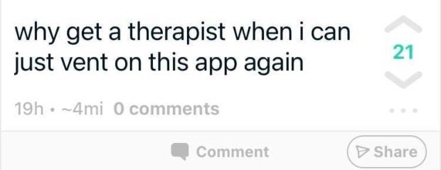 This person might have a point. Yik Yak is free and therapy is not.