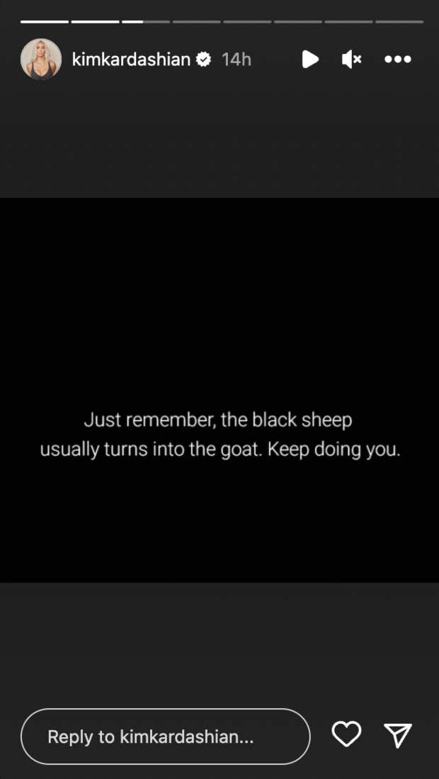 She posted the somewhat-convoluted phrase “just remember, the black sheep usually turns into the goat. Keep doing you.”