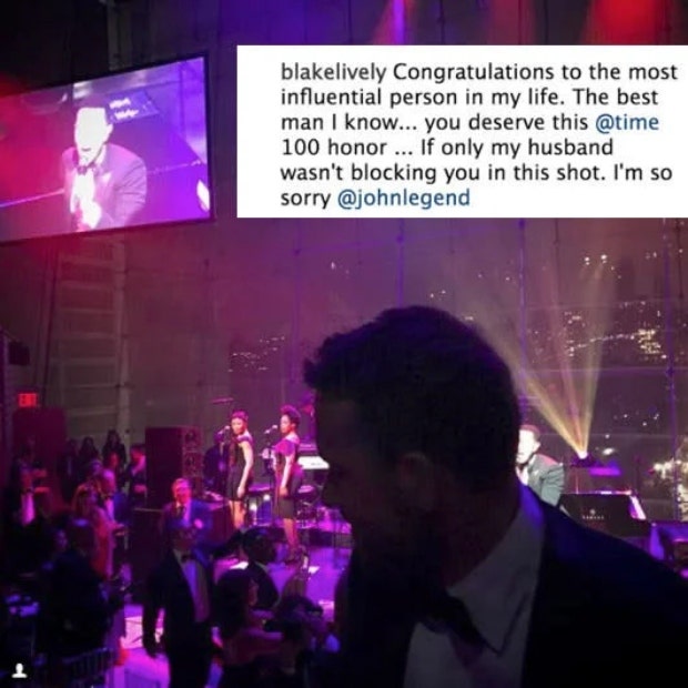 That’s right, John Legend was also being honored at the TIME 100 gala, and as a little troll to her husband, Lively posted a photo of him blocking Legend’s performance on stage.