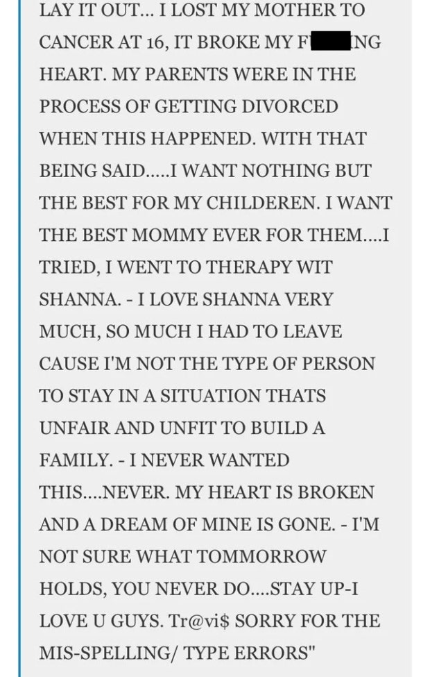 He concludes the post with an all-caps rant about how he has tried to work through the issues with her, but to no avail.