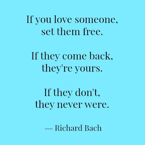 6. "If you love someone, set them free. If they come back they're yours; if they don't, they never were." — Richard Bach