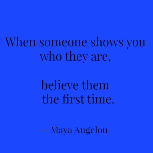 7. "When someone shows you who they are, believe them the first time." — Maya Angelou