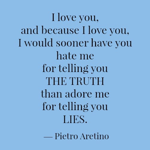8. "I love you, and because I love you, I would sooner have you hate me for telling you the truth than adore me for telling you lies." — Pietro Aretino
