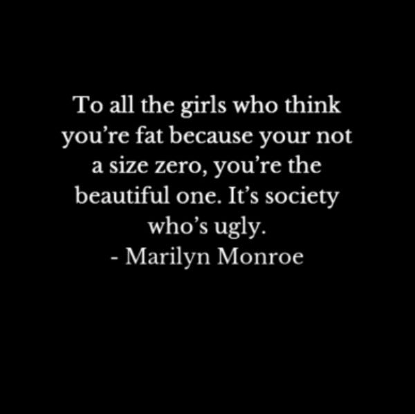 9. “To all the girls who think you’re fat because your not a size zero, YOU'RE the beautiful one. It’s society who’s ugly." — Marilyn Monroe